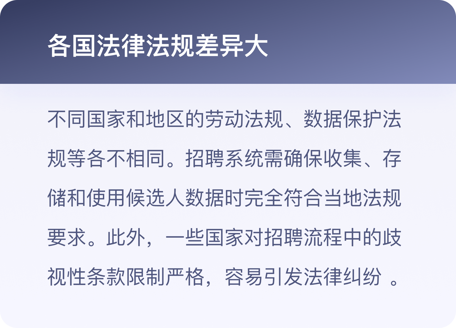 实时跟踪全球合规政策,如个人信息收集、简历模版规范等,敏捷迭代规避风险