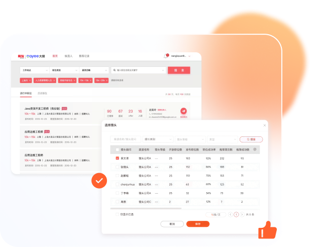 · 推荐简历自动判重,支持设置猎头保护期,费用结算高效合规