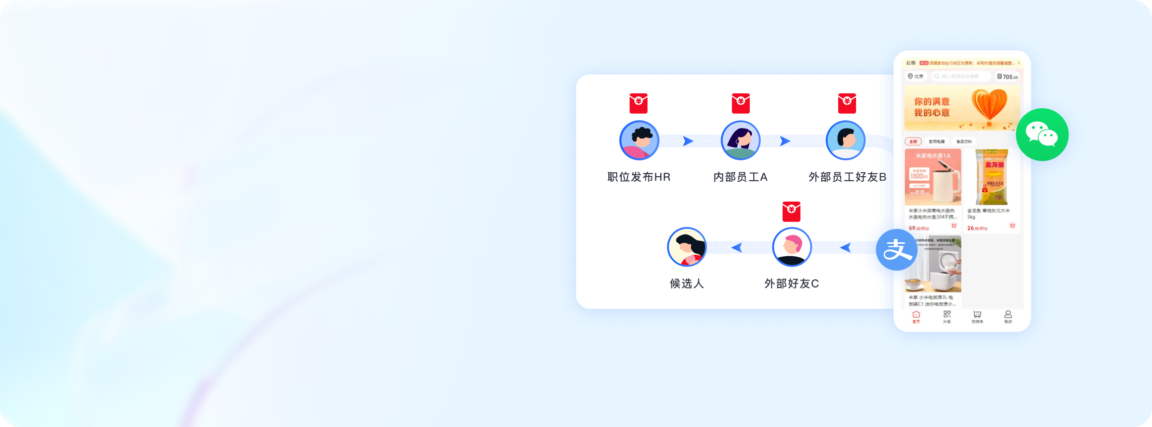内部员工身边的人脉资源有限,难以满足企业招聘的岗位需求,希望能通过裂变传播触达更多行业内优质人才