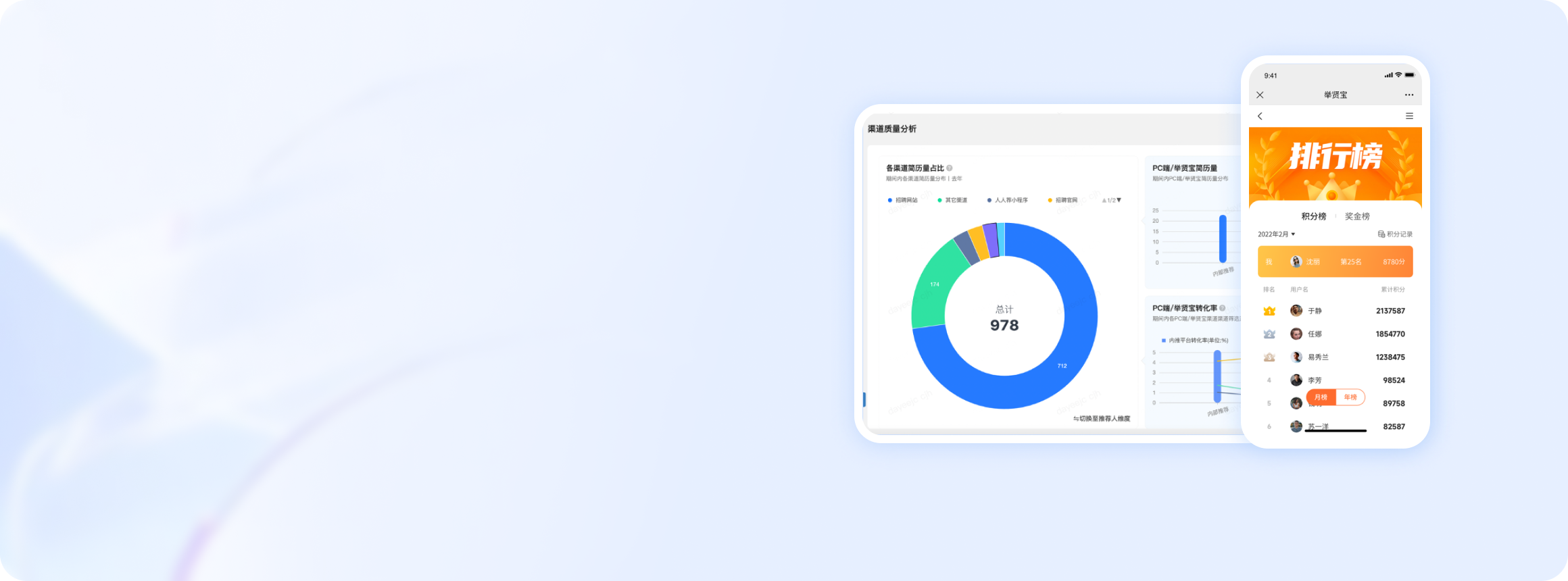 专属推荐积分排行榜单,随时随地查看员工推荐情况,发现优质伯乐
