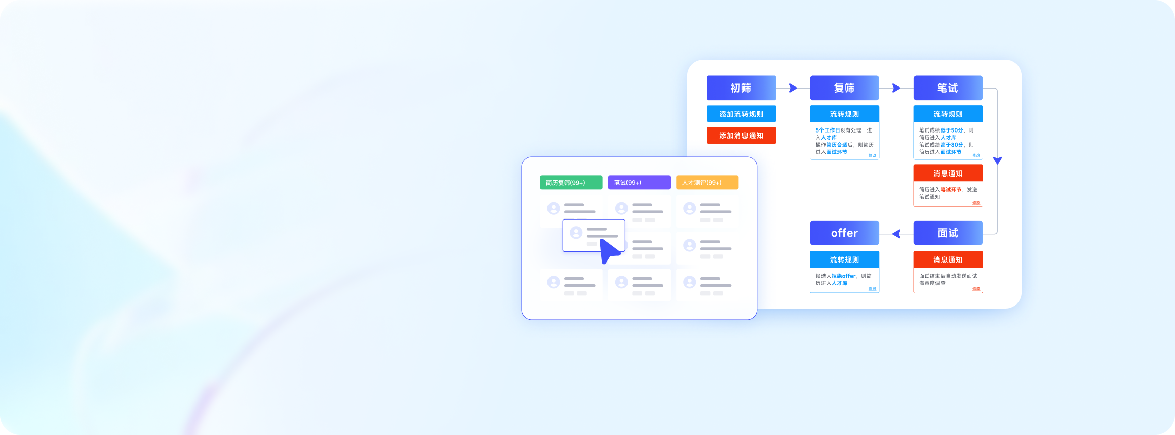 通过规则设置,简历满足一定条件后自动流转到下一阶段,提升流转效率